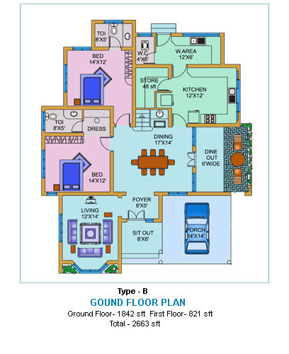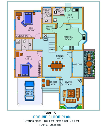 ELECTRICAL:Concealed conduit wiring and copper conductor, adequate light and fan points 6 AMPS plug point etc. controlled by ELCB & MCB with independent KSEB meters.