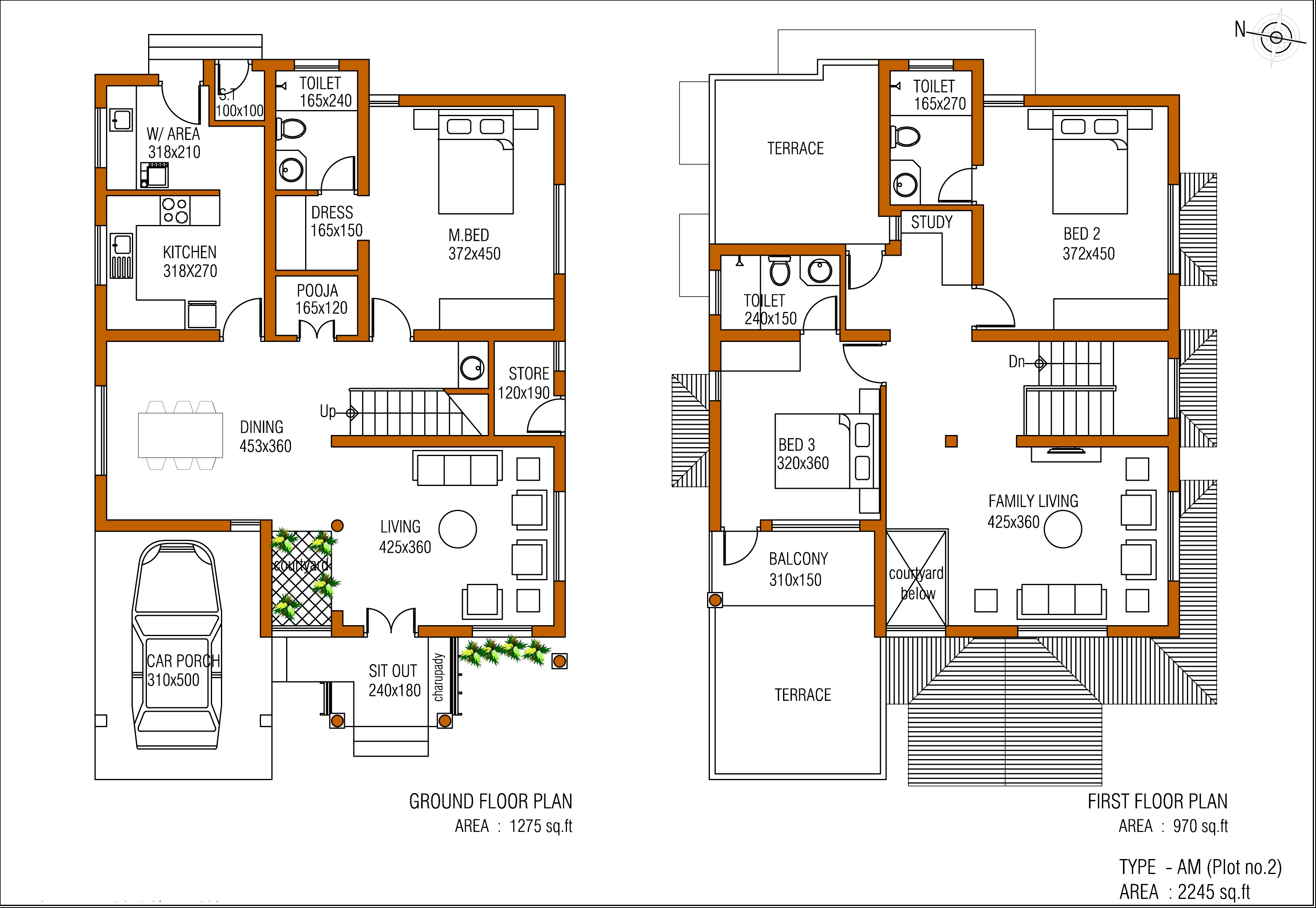 PAINTING: Putty and paint with plastic emulsion finish for all interior walls and anti fungal exterior emulsion finish for the exterior walls and enamel paint for wood work and grills.
