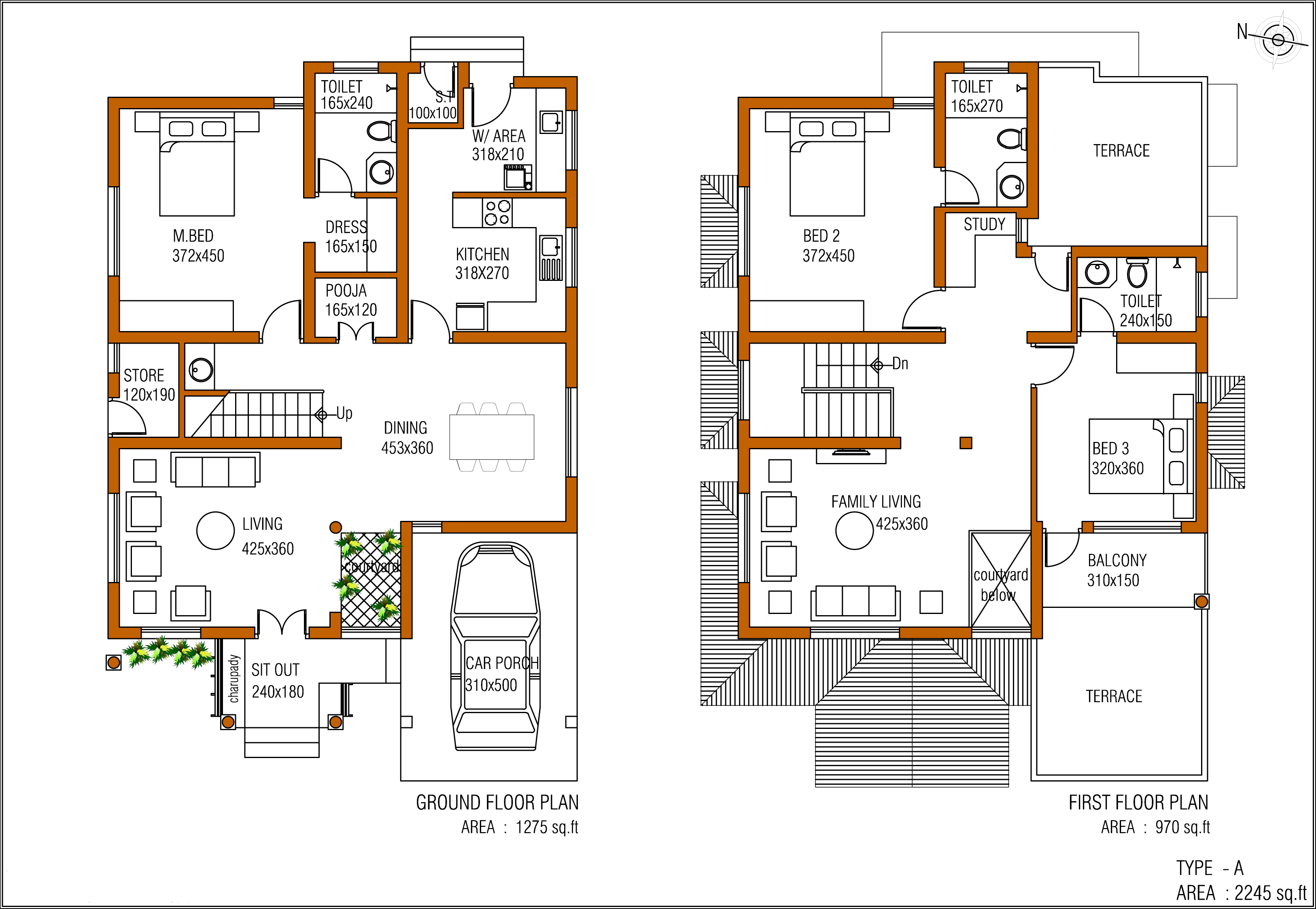 ELECTRICAL:Concealed conduit wiring and copper conductor, adequate light and fan points 6 AMPS plug point etc. controlled by ELCB & MCB with independent KSEB meters.
