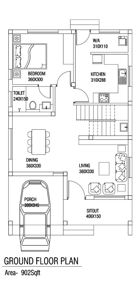 Flooring: Vitrified tiles 3' x 3' for all rooms. Granite slab for sitout. Granite for staircase tread.